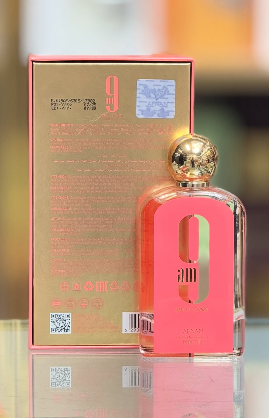 ادکلن ناین فم صورتی از برند لوکس Afnan، عطری زنانه، شیرین و فریبنده است که با هر اسپریاش، حس اعتمادبهنفس و لطافت زنانه را زنده میکند.